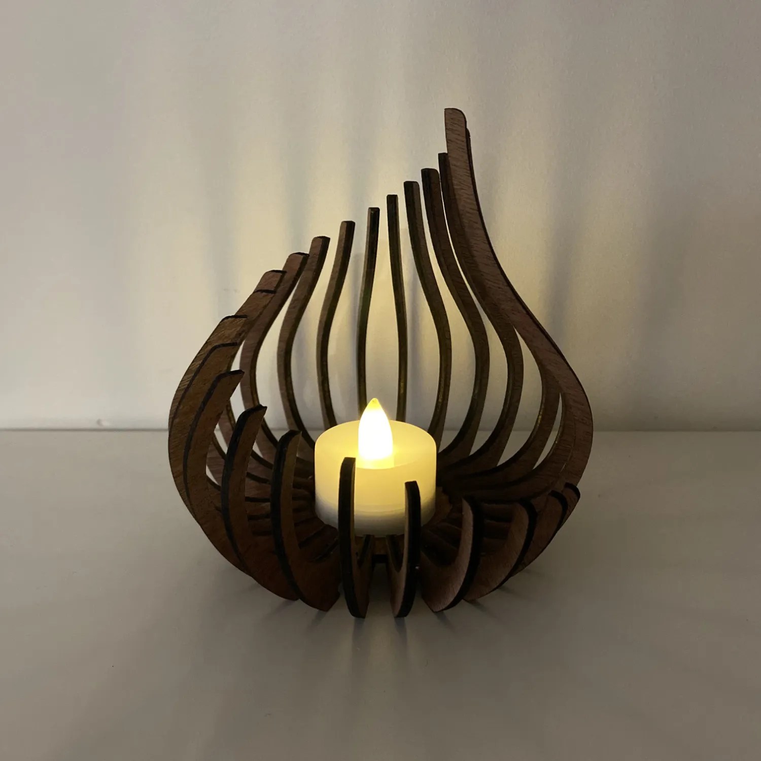 Cette lampe en bois est conçue pour recevoir une bougie de type LED. N’utilisez surtout pas de bougie traditionnelle qui pourrait mettre le feu au bois de la lampe.